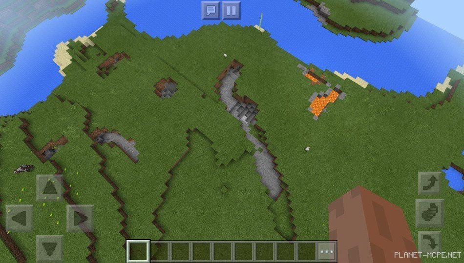Если пройтись по равнине в Minecraft Pocket Edition, то можно увидеть необычный разрыв, рядом с которым есть лавовый источник в Minecraft PE.