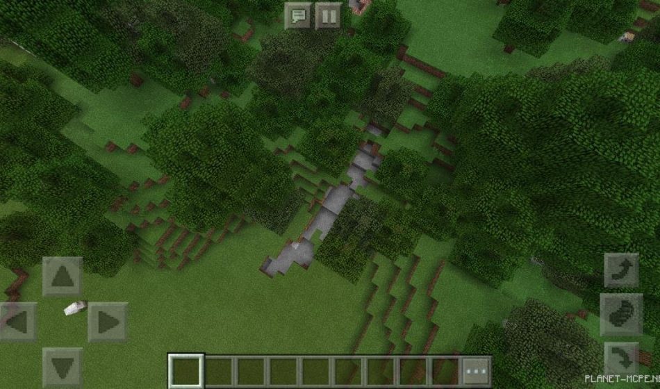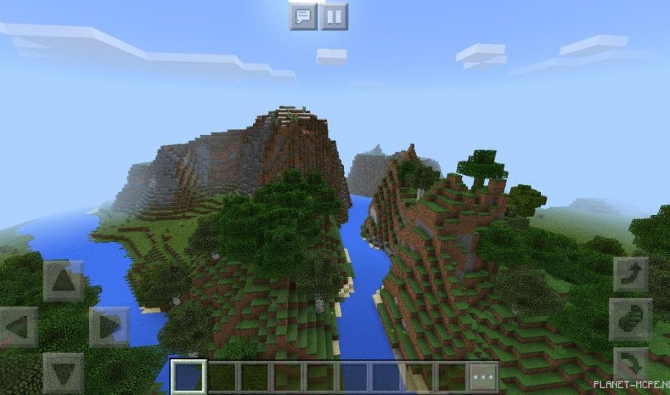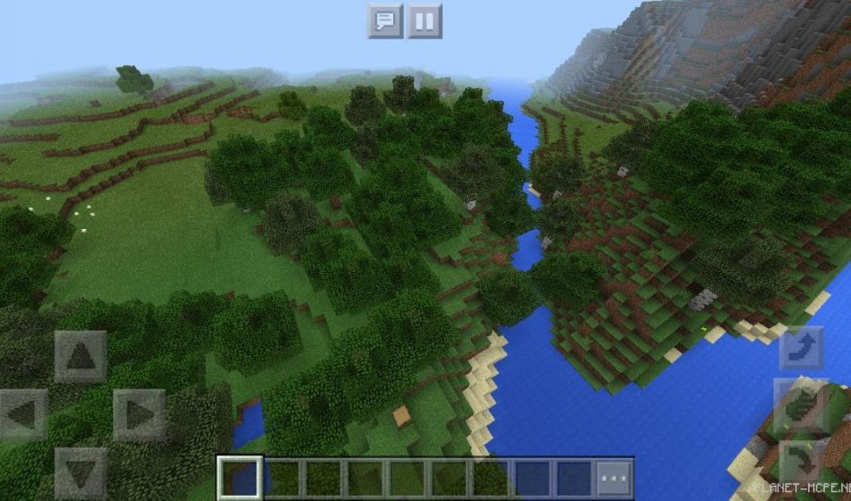 На этом сиде в Майнкрафт Покет Эдишн, вы сможете увидеть небольшой лес, который располагается на берегу узкой речонки, разделяющая земли в Майнкрафт ПЕ. Также на площадке МКПЕ, вы сможете увидеть то, что виднеется высокие горы и есть другие водоемы.