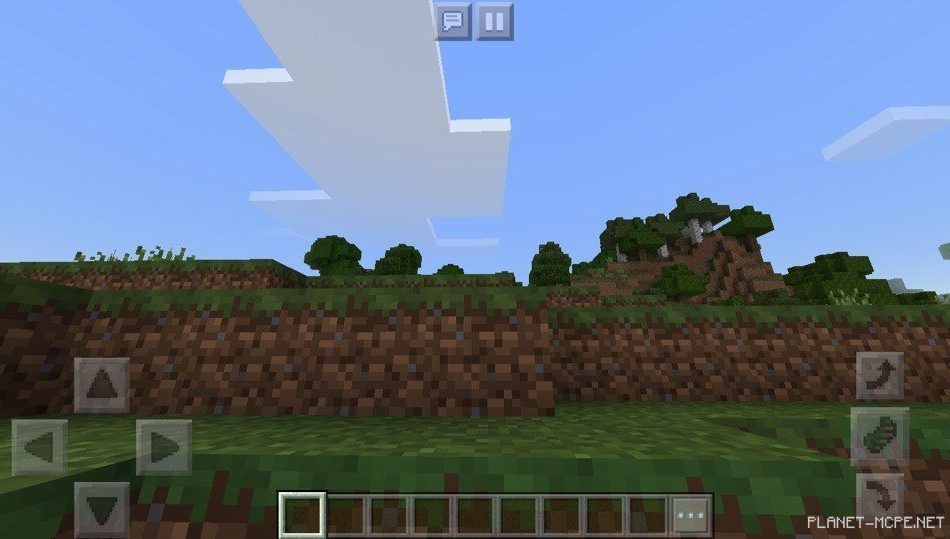 Когда вы впервые попадаете в данный мир Minecraft Pocket Edition, вы увидите сразу же землю. Вы заспавнитесь сразу перед ней, но когда поднимитесь вверх вы увидите красивое место в Minecraft PE с деревьями.