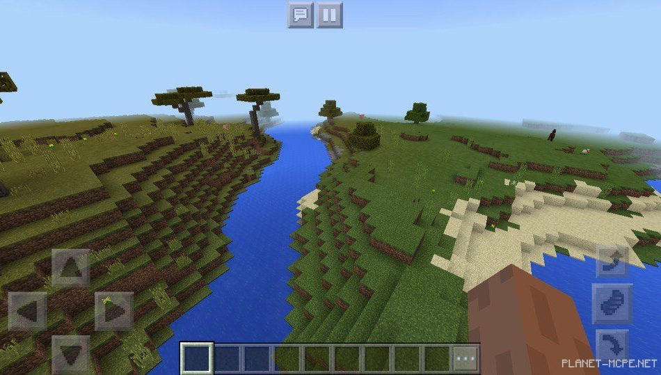 Между биомом с акацией и равниной протекает длинная река. Было бы здорово отправить кораблик вниз по течению на площадке MCPE!
