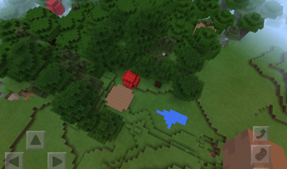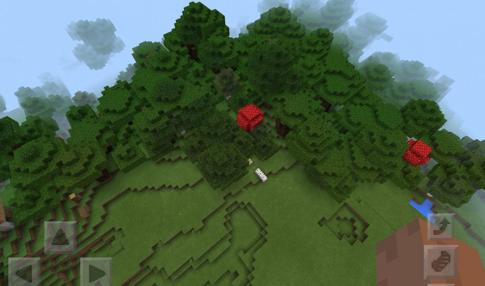 Рядом расположился большой темный лес, в котором есть много дерева, но и не только. В МКПЕ еще есть и грибы, которые вы можете собрать и сварить вкусный суп между приключениями в Minecraft Pocket Edition.