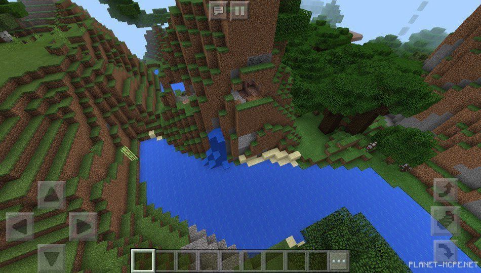 Вы сможете увидеть множество гор, а также красивых пейзажей в Minecraft PE.