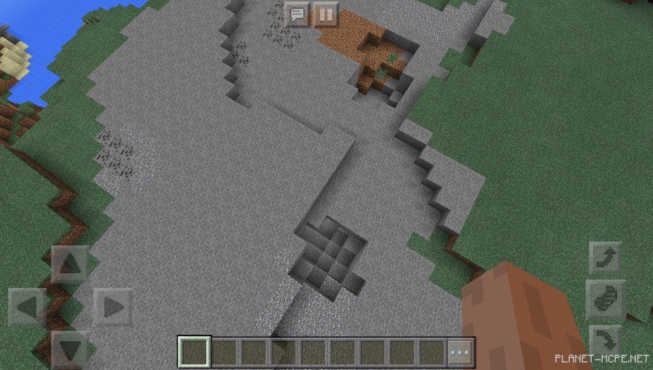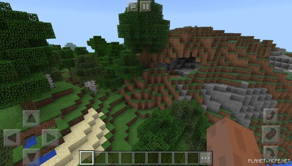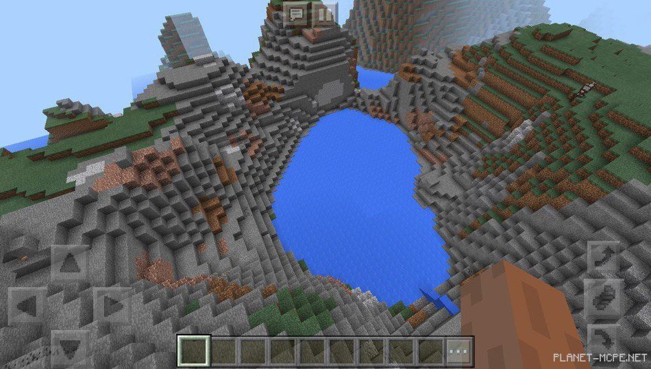 На этом сиде в майнкрафт покет эдишн есть большие горы, на одной из гор есть пещера, в которую можно сходить для добычи ресурсов в шахте в майнкрафт пе 1.2. Рядом с вашим местом положения у вас есть возможность искупаться в водоеме в красивой местности.