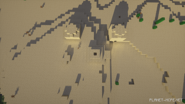 На этом сиде есть храм, который расположен в пустыне. Но он находится не просто в пустыне, он находится где-то под песком, так как он захоронен, а также заброшен. Вам придется отыскать его в Minecraft Pocket Edition, если вы хотите посмотреть на то, что расположено внутри, увидеть неизведанное.