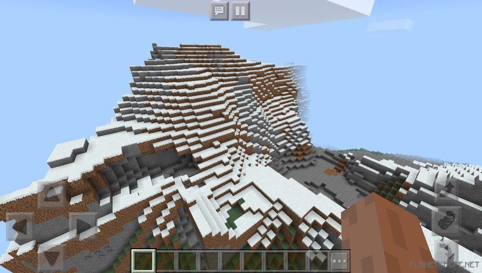 На этом сиде в Майнкрафт Покет Эдишн вы сможете увидеть большие горы, которые засыпаны снегом в Майнкрафт ПЕ, это явление выглядит достаточно привлекательно на площадке МКПЕ.