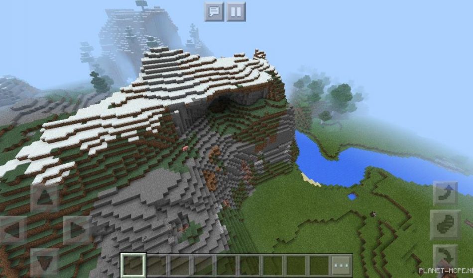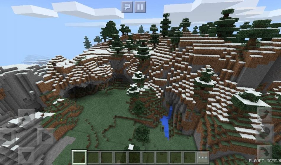 Также, в Minecraft Pocket Edition есть и необычные горы с камнем, но и с навесами, которые покрыты снегом. За тем, располагаются хвойные деревья в Minecraft PE, которые можно срубить.