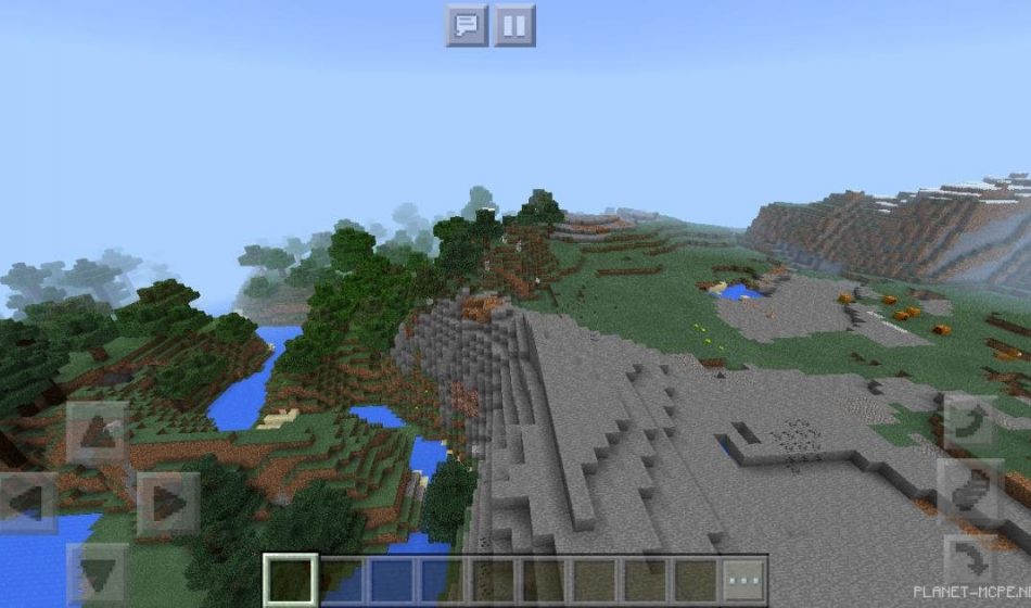 Здесь, действительно много гор, но есть и другие преимущества в данном мире, а именно речонки, которые можно увидеть на 1 фото выше в MCPE.
