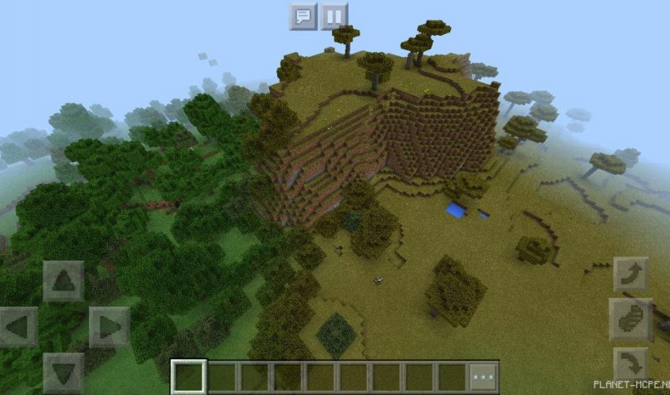 Также вы сможете увидеть то, что в Minecraft Pocket Edition, есть биом, в котором растет много деревьев, а именно акации, а рядом есть большой лес с дубом и березой в Minecraft PE.