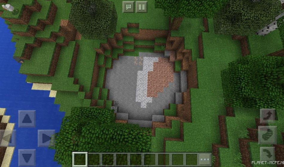 На этом сиде в Майнкрафт Покет Эдишн, вы сможете увидеть необычную яму, которая располагается в Minecraft PE. Она является действительно круглой,однако не глубокой на площадке MCPE.