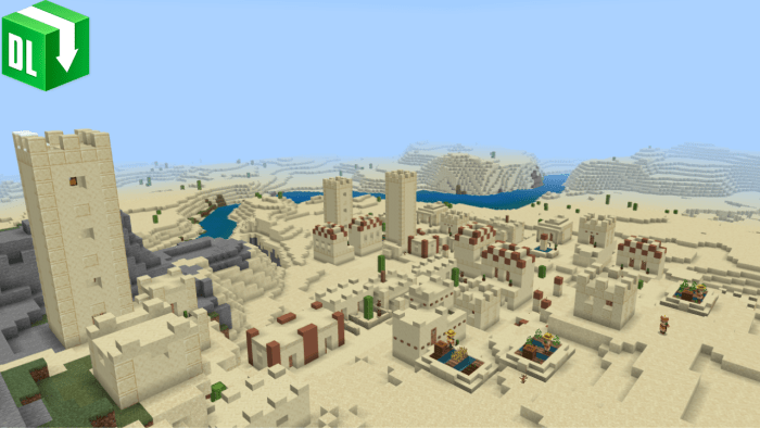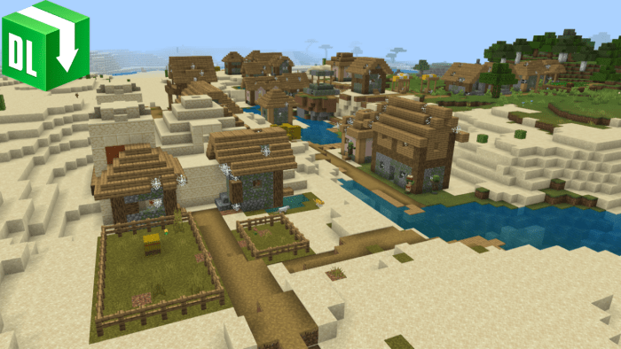 Первый «жилой комплекс» в Minecraft Bedrock Edition 1.16 находится совсем рядом. Просто развернитесь, и вы увидите сид с деревнями, пирамидами и ущельем. Первая деревня пустыни совсем рядом – добраться можно очень быстро.