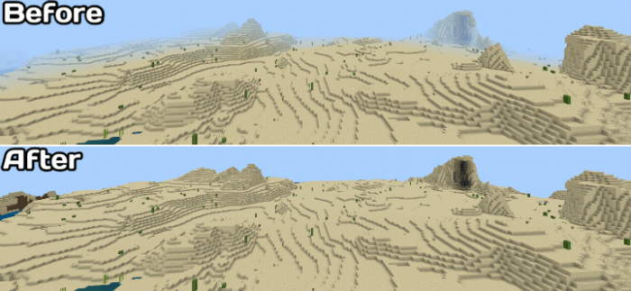 Шейдер «Fog Remover (Удаление тумана)» удаляет в Майнкрафт эффект тумана, благодаря чему количество кадров, отображающихся на экране Вашего устройства, увеличится. Нечто подобное есть в MinecraftJava, которые и послужил основой создания данного шейдера. В результате более четкой загрузки чанков, увеличится дальность видимости.