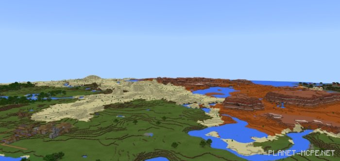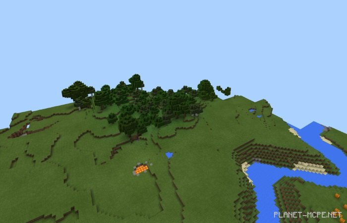 Вот так выглядит мир Майнкрафт ПЕ с высоким расстоянием рендеринга при использовании данного пакета шейдеров.