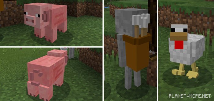 Предстаем Вашему вниманию пакет ресурсов «3D Mob (Улучшенная 3D модель мобов)», который добавляет лучшие 3D-функции трём мобам в игре Minecraft Pocket Edition. Например, у свиньи появится реалистичная косичка и уши будут выглядеть гораздо лучше. Он действительно находится в гармонии с оригинальной темой ванили, одновременно улучшая некоторые детали. В будущем Вы можете ожидать большего количества улучшений для более широкого круга мобов МКПЕ.