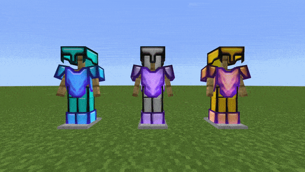 Анимация на броне работает с железными, алмазными и с золотыми доспехами.