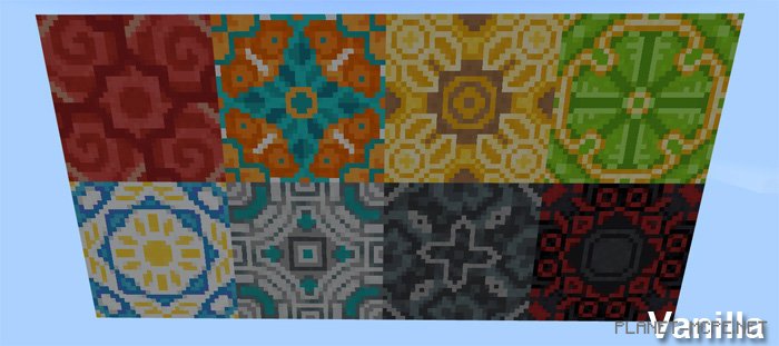 Вот некоторые из блоков глазурованной керамики с включенным пакетом текстур в МКПЕ. И вот текстуры ванили по умолчанию, чтобы Вы могли сравнить.