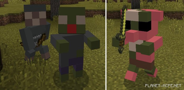 Все мобы в игре Minecraft PE (кроме оцелота, попугая и дракона Края) были переработаны. Лучше всего это будет заметно по их моделям, а также и по их текстурам.