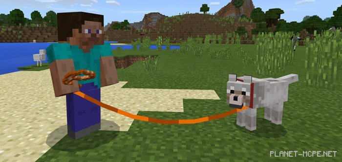 Теперь цвет поводка в мире Майнкрафт Покет Эдишн будет изменён на оранжевый или синий, что очень сильно порадует Вас. Никаких функций не было изменено, изменён лишь внешний вид.