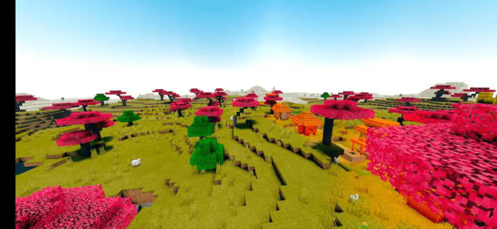 Пакет текстур «Colored Leaves (Разнообразные листья)» придает листьям Майнкрафта новые, красочные цвета.