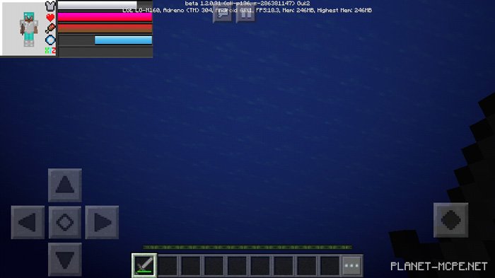 Компактный HUD (дисплей с данными) отображается на экране, как только представленный пакет ресурсов будет включен в настройка Ваших глобальных ресурсов. Это видно только в режиме выживания Minecraft PE.