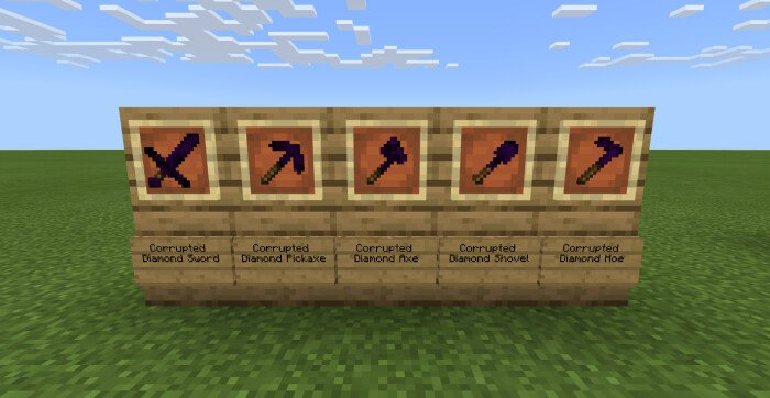 Все предметы Майнкрафта, которые раньше назывались просто алмазными, примут название «Corrupted Diamond [предмет]».