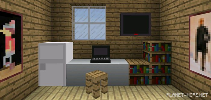 Текстуры «Decoration (Декорации)» полностью заменяют дизайн и модель четырёх блоков в игре Minecraft Pocket Edition. Кажется это ошибка (или возможно бета) в последней бета-версии. Новые блоки, которые Вы увидите в МКПЕ — это мебель и электроника. Например, некоторыми из включённых вещей являются холодильник и телевизор.