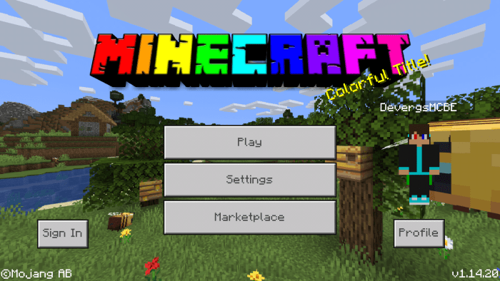 Радужная тема. В природе и в интерфейсе Minecraft Bedrock не так много ярких цветов, так что красочный заголовок немного оживит этот мир.