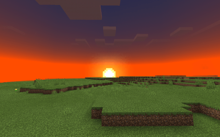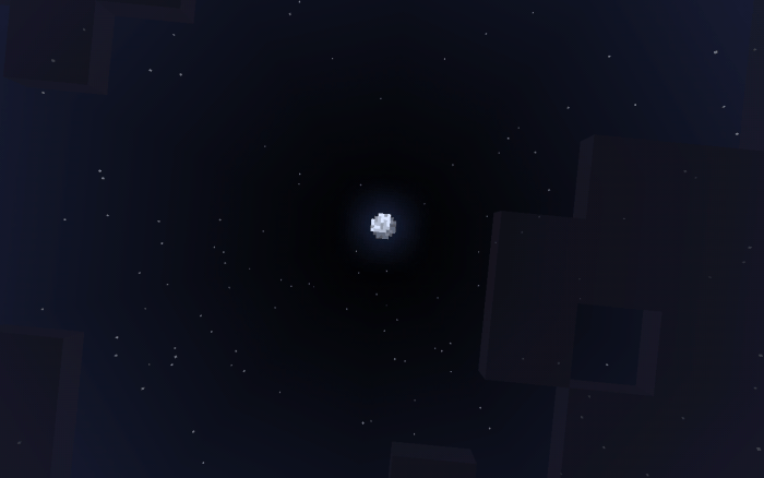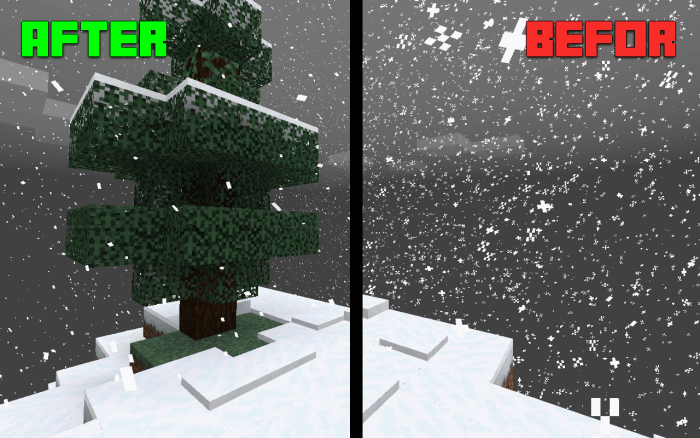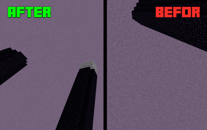 После и до. Уменьшен шум. Небо Края Minecraft с уменьшенной плотностью дождя. Снегопад в равнинном биоме. Луна немного уменьшится. И солнце станет более круглым.