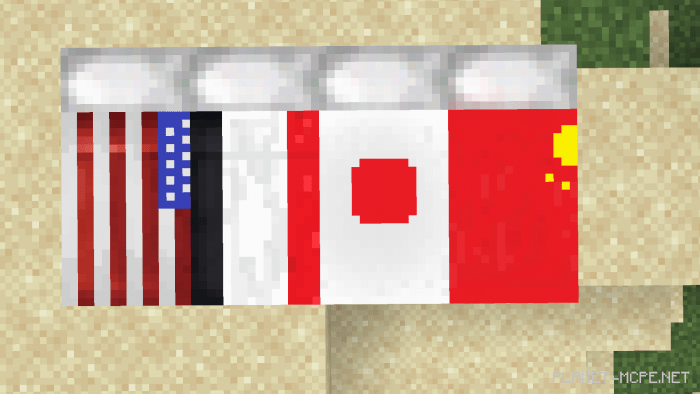 Вы можете выбрать флаг, на котором Ваш Майнкрафт персонаж будет спать. Там есть флаг Испании, Австралии, Японии, Китая, Индии, Великобритании, Аргентины и других стран!