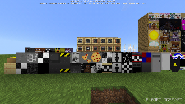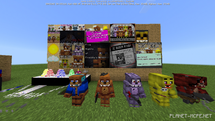 Текстуры «FNaF (Пять Ночей у Фредди) » навеяны игрой FNaF от Scott Cawthon . Что представлено в этом пакете для Minecraft ? Здесь есть звуки, доспехи, предметы, картины, блоки, блоки с движением и существ, изменённых с появлением тематики «Пять Ночей у Фредди».