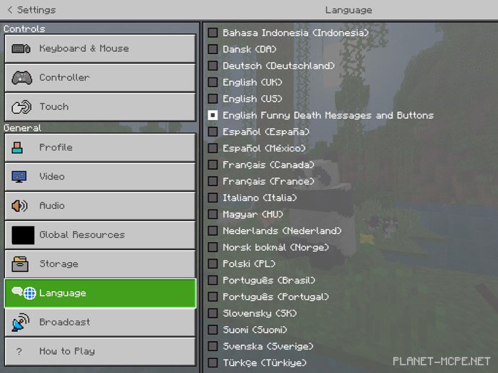 Пакет текстур «Funny Death Messages And Buttons (Весёлые сообщения смерти и кнопки)» создан специально для того, чтобы позабавить Вас после смерти в Майнкрафт. Несколько примеров сообщений о смерти: «Обнаружено, что Земля плоская», когда Вы проваливаетесь в пустоту, и «попытка использовать горячую ванну», если Вы горите в лаве. Большинство сообщений смерти настроены на самый смешной опыт в Майнкрафт Бедрок. Несколько кнопок также являются пользовательскими. При применении пакета обязательно перезапустите Minecraft Bedrock, затем войдите и включите язык в настройках.