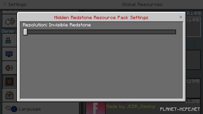 Скрыть редстоун может быть очень раздражительным и трудным заданием в Minecraft Bedrock. Вам нужно либо строить вокруг него, либо прятать его под землёй. С пакетом текстур «Hidden Redstone (Скрытый редстоун)» Вам больше не придётся об этом беспокоиться, потому что редстоун станет невидимым. Это отлично подходит для развлечений с друзьями или создания карт в Майнкрафт. Есть специальный ползунок, с помощью которого Вы можете контролировать видимость редстоуна от невидимого до видимого. Вы можете видеть его в процессе стройки и спрятать, когда всё будет завершено!