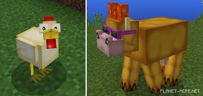 Этот пакет текстур для МКПЕ также включает текстуры для курицы и коровы. Однако эти текстуры основаны на некоторых существах из приложения Hay Day. Вот предварительный просмотр пакета текстур:
