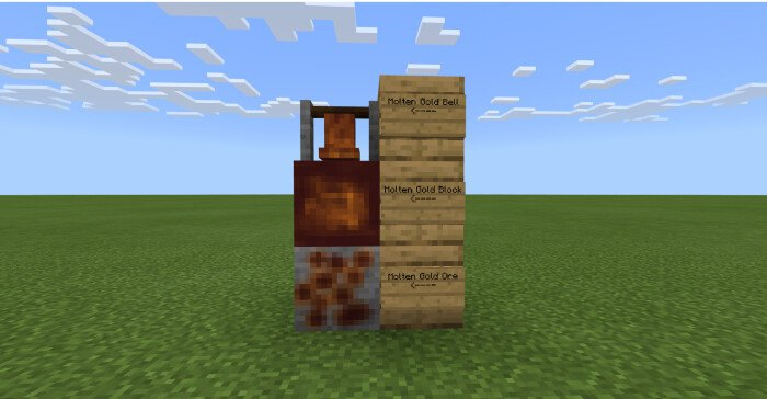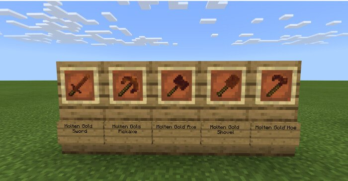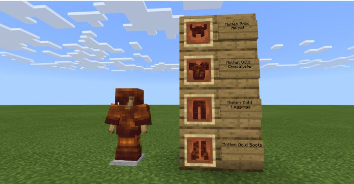 Пакет текстур «Molten Gold (Расплавленное золото)» изменяет текстуры всех золотых предметов Minecraft на расплавленные.