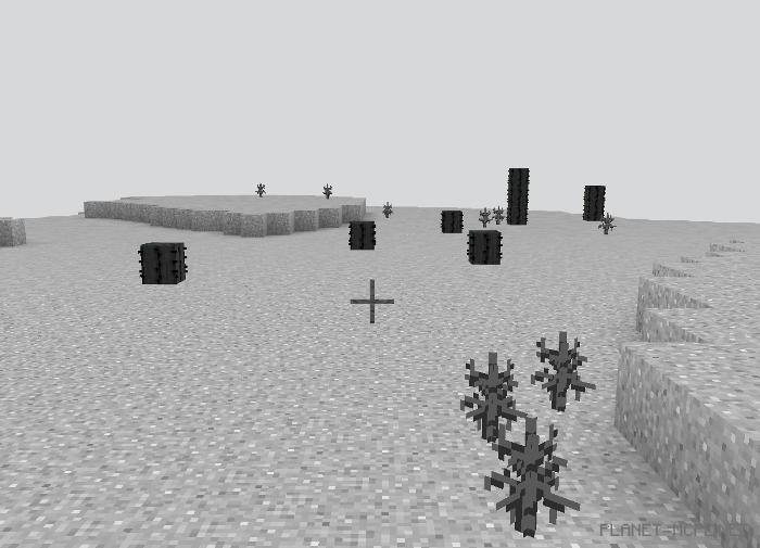 С помощью этого забавного пакета текстур большая часть цвета была удалена из Майнкрафт, что делает игру более трудной, поскольку будет труднее различить руды и обнаружить мобов на расстоянии.