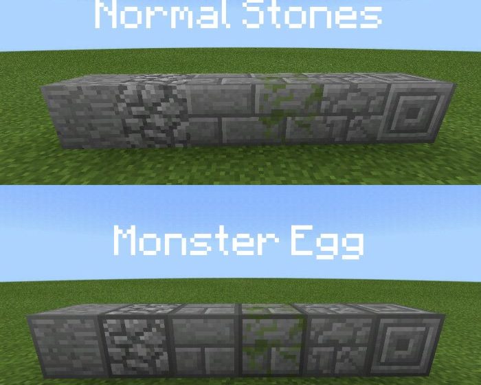 Текстура камня и яйцо монстра теперь отличаются, чтобы Вы могли отличить их. У яйца монстра есть тёмный контур в блоке, а текстура нормального камня в Майнкрафт не изменилась.