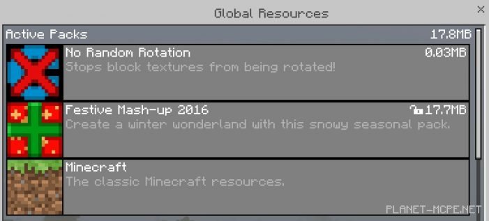 Убедитесь, что пакет случайного вращения не является исходным пакетом ресурсов в MCPE, иначе он не будет функционировать должным образом.