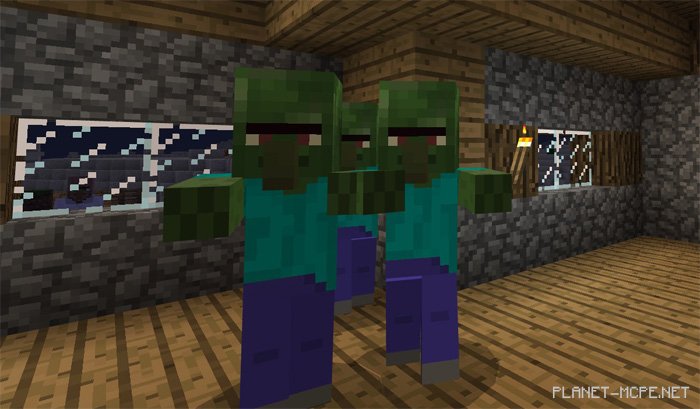 В основной версии Minecraft Pocket Edition деревенские жители сохраняют свою одежду после того, как будут обращены в зомби. Однако, благодаря данному дополнению в виде ресурс пакета для МКПЕ, новообращенные зомби получат пару синих брюк и бирюзовую футболку. Лично я считаю, что реалистично, когда они сохраняют свою собственную одежду, но, надеюсь, текстурпак «Original Zombie Villagers» найдет применение в Вашей жизни в Майнкрафт Покет Эдишн.