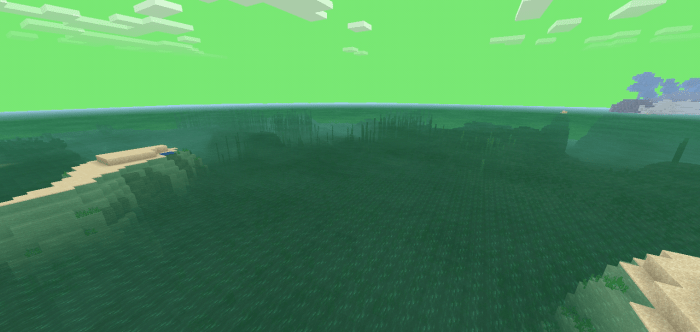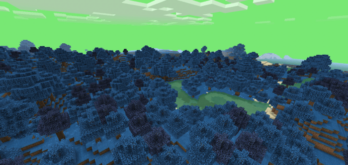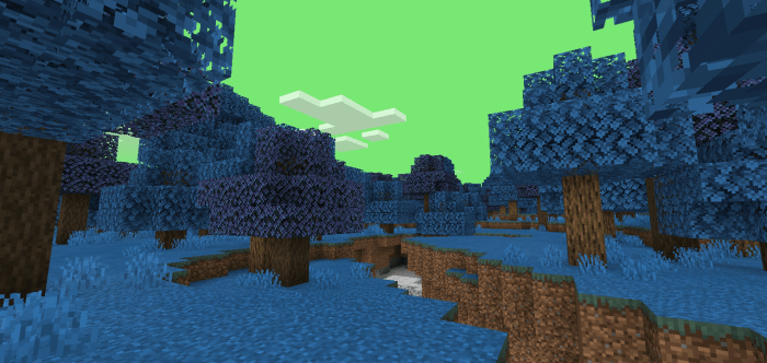 Благодаря текстурам Планета Намек (Planet Namek Pack) у растительности в MCPE поменяется цвет с зеленого на синий, а вода станет немного кислотного оттенка. Кстати, нырять в нее можно без опасений.