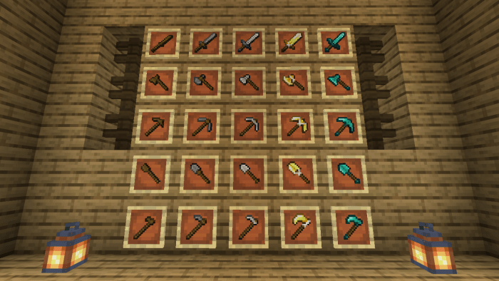 Инструменты. Все инструменты, начиная от хрупкого дерева и заканчивая прочным золотом, приобретут новые, более четкие текстуры.