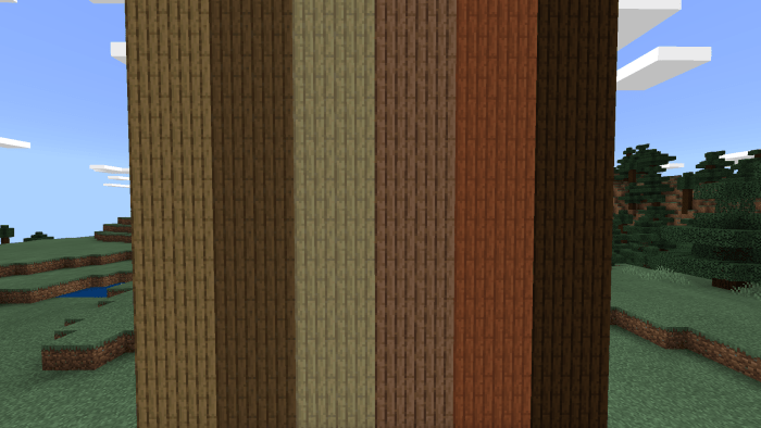 Пакет текстур «Sideways Planks (Боковые доски)» добавляет в Minecraft Bedrock новый внешний вид строительных досок, просто переворачивая их на боковую сторону.