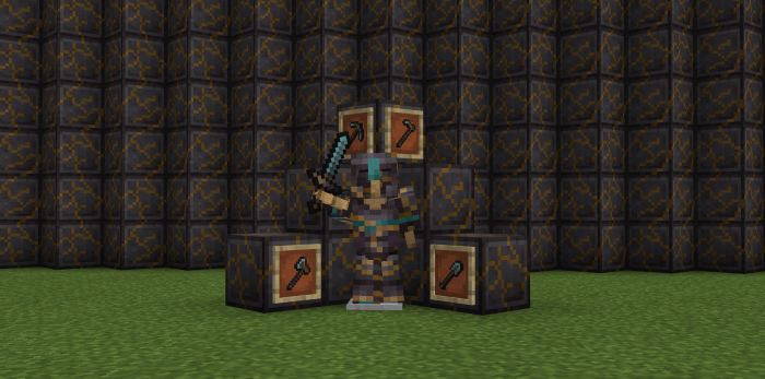 Пакет текстур «Biroj Netherite (Незерит Бироджи)» добавляет одному из самых редких материалов Minecraft — незериту новые текстуры с золотыми элементами. Теперь все предметы из этого материала выглядят значительно эффектнее и привлекательнее! Блок незерита. Броня из незерита. Как видно на картинке, также были добавлены элементы цвета алмаза.