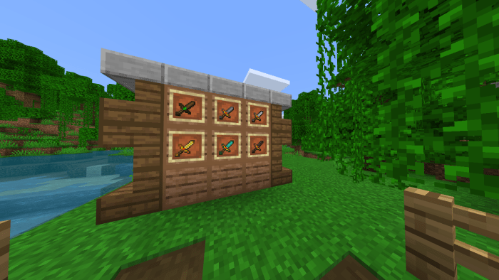 Шерсть. Древесина (все, кроме некоторых деревьев Нижнего Мира Minecraft: адский нарост и багровые деревья). Укороченные мечи. И ограненные руды.