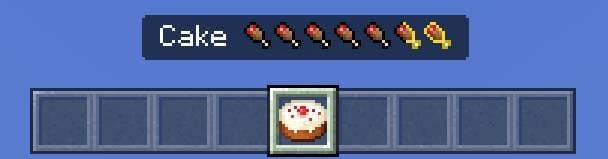 Так будет выглядеть вареная говядина. Съев ее, Вы утолите 8 очков голода, характеризующиеся 4 голенями.   Значки голода отображаются с помощью голени. Таким образом можно показать только целое количество очков, для дробного варианта этот способ не подходит. Для решения этой проблемы автор сделал так, чтобы дробная часть приписывалась числовым значением вслед за значками голени. Печеный картофель. Восполняет 5 очков голода (2,5 единиц).  Торт. Восполняет 14 очков голода (7 единиц).  Тыквенный пирог. Восполняет 8 очков голода (4 единицы). Гнилая плоть. Восполняет 4 очка голода (2 единицы). Сушеная ламинария. Восполняет 1 очко голода (0,5 единиц).