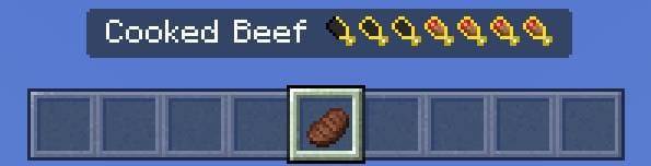 С пакетом текстур «Hunger Points on Food Names (Очки голода на названии еды)» в Minecraft Bedrock около названия продукта появится количество очков голода, которое этот продукт восполняет.