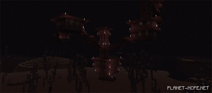 Измерение Края, пожалуй, выглядит лучше из двух изменённых с помощью данных текстур измерений. Если бы я знал, что существует измерение Края в мире Майнкрафт ПЕ, но никогда его не видел, то точно подумал бы, что именно так оно и должно выглядеть.