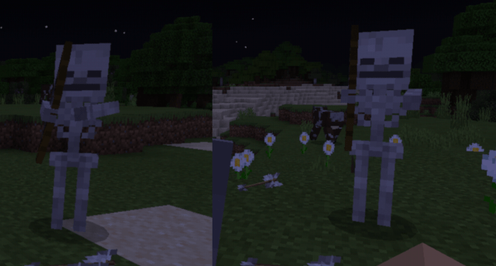 Пакет текстур «Vanilla Animation (Ванильная анимация)» улучшает анимацию некоторых мобов Майнкрафта. Измененная поза сидящего волка. Теперь он похож на версию, которая была показана в трейлере обновления «Village and Pillage». Это анимация, взятая из версии Java. Скелет не просто держит свой лук, а направляет его на игрока. Зомби ходят в позе, которая показывалась в роликах Minecraft в Инстраграме. Положение кошки было создано по трейлеру обновления «Village and Pillage».