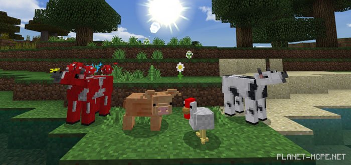 Дружелюбные: курицы, свиньи, овцы, коровы, грибные коровы